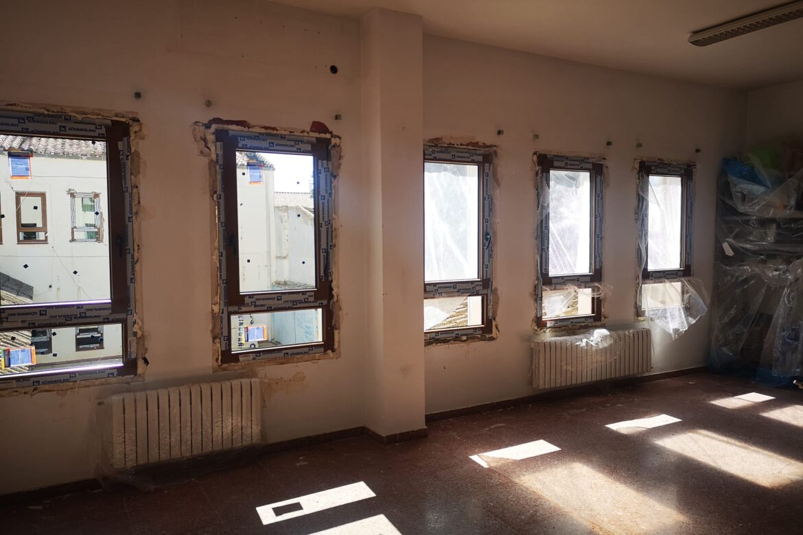 También se está actuando en el cambio de los cerramientos con la sustitución de todas las ventanas, en el cambio de iluminación por tecnología led de bajo consumo, además de actuar en la sustitución del sistema de climatización de todo el edificio, incluido el salón de actos y sala de cine para conseguir un espacio más confortable, ahorrando además energía. Todo ello se completará con las labores de pintura aislante en el exterior para conseguir unas instalaciones eficientes que contribuyen al ahorro energético.