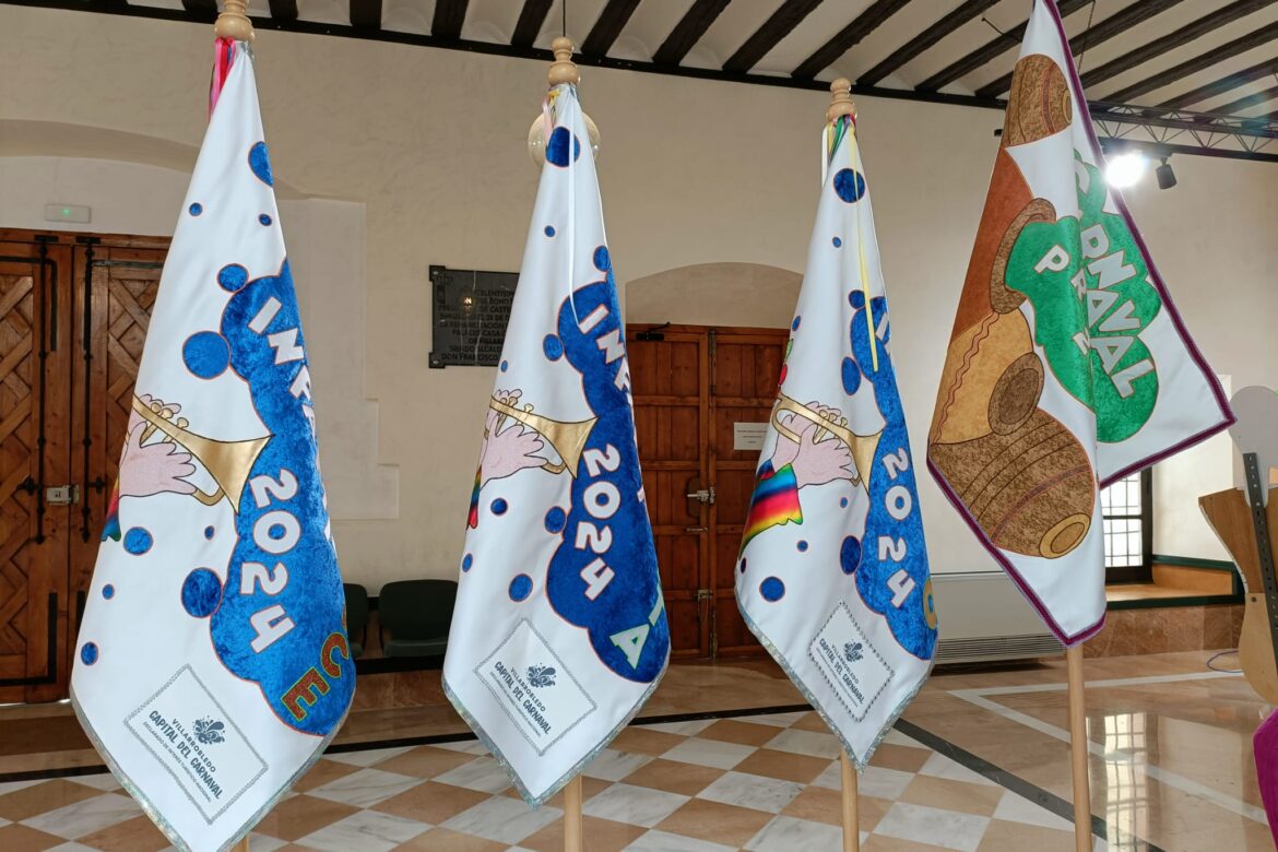 Tres banderines para las comparsas infantiles y un banderín para el desfile de adultos que este año es más manchego que nunca, con una representación de las emblemáticas tinajas de Villarrobledo.
