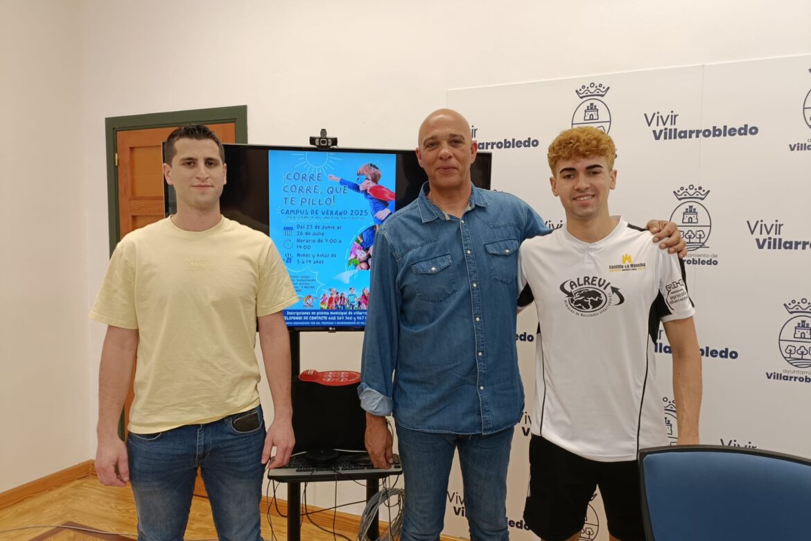 El concejal de deportes, Miguel Hergueta, junto a José Ángel Fernández y Naím López, en representación del Club de Hockey Línea “Troyanos” ha presentado el Campus Municipal de verano que organiza, de nuevo este año, el Ayuntamiento junto a este Club deportivo de la localidad, dados los buenos resultados de ediciones anteriores.
