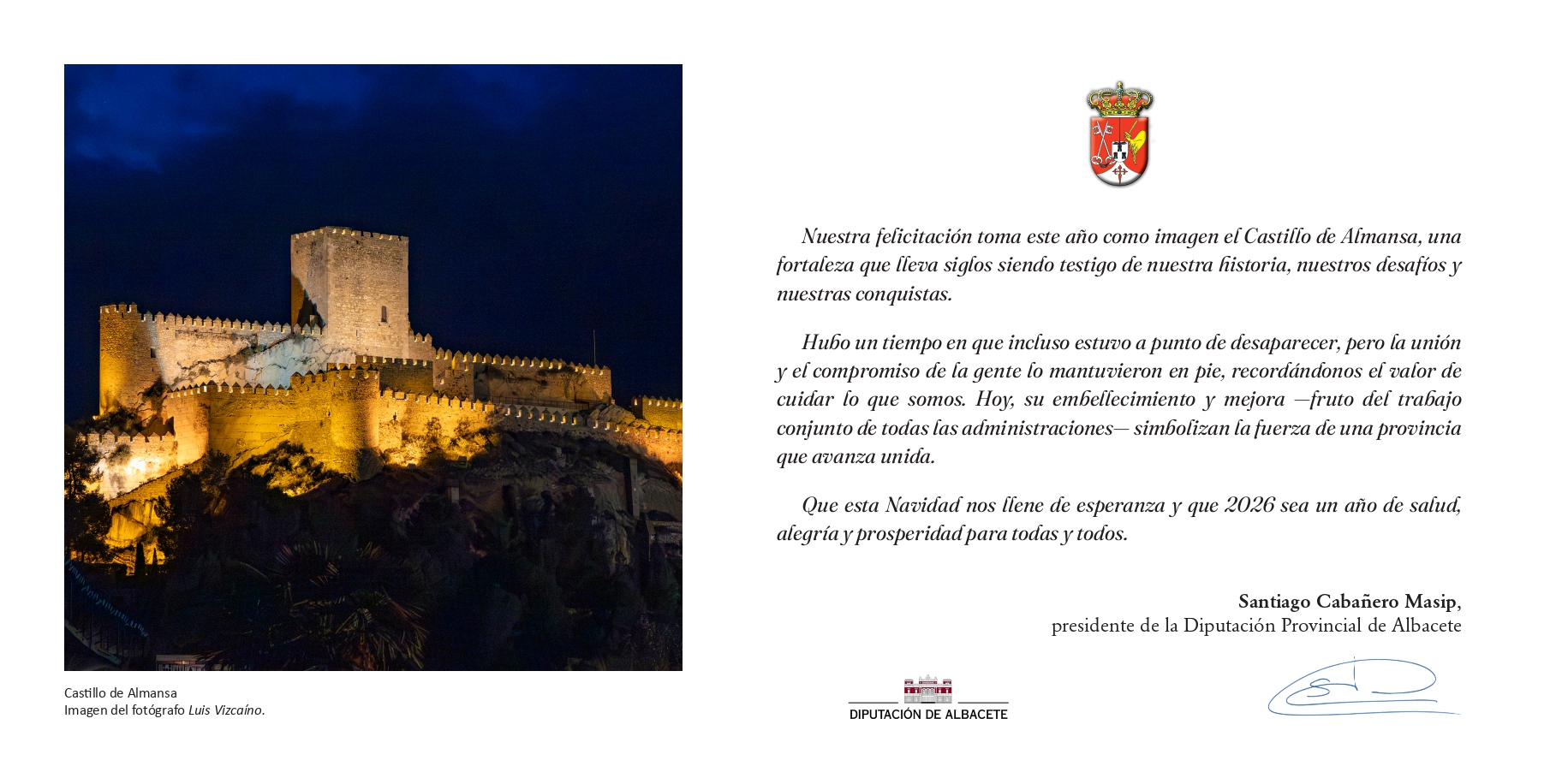 NoticiasRegional Felicitación de Navidad del Presidente de la Diputación de Albacete, Santiago Cabañero.